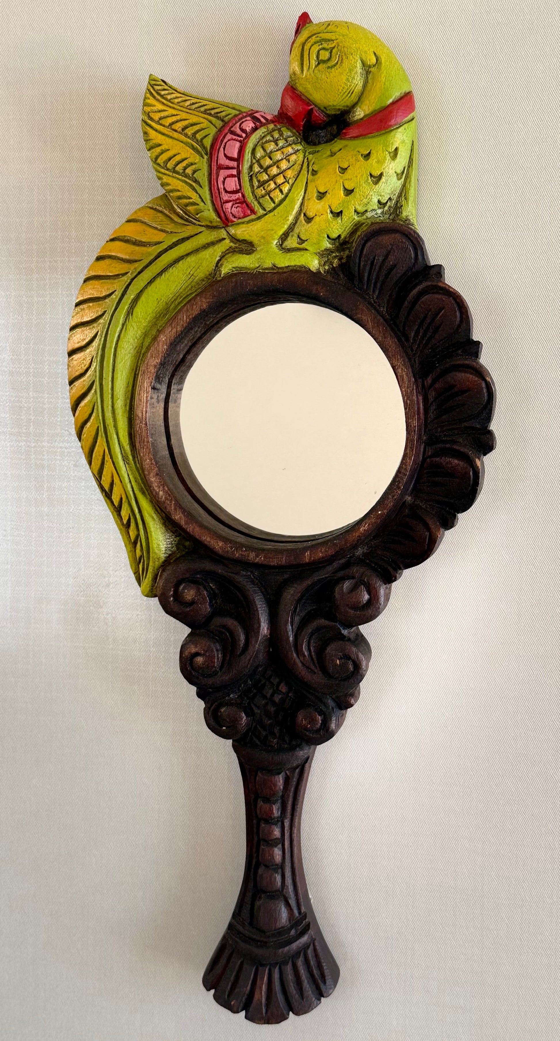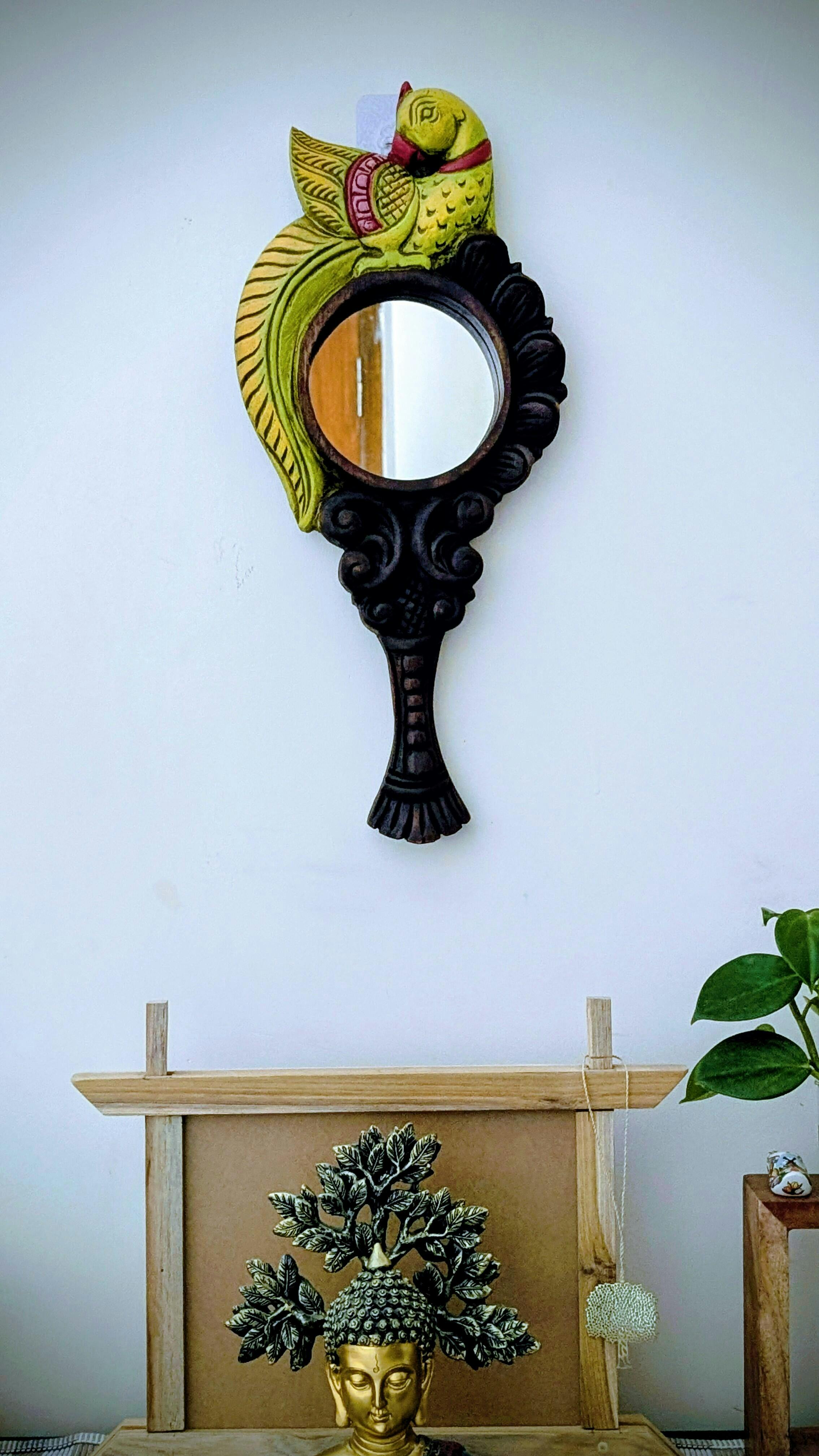 I recently bought this wooden parrot mirror, and it has completely transformed the look of my wall. The craftsmanship is stunning — the hand-painted parrot design adds a lovely traditional touch while the mirror itself is clear and well-finished. The detailing and vibrant colors make it a perfect aesthetic addition to my home decor.