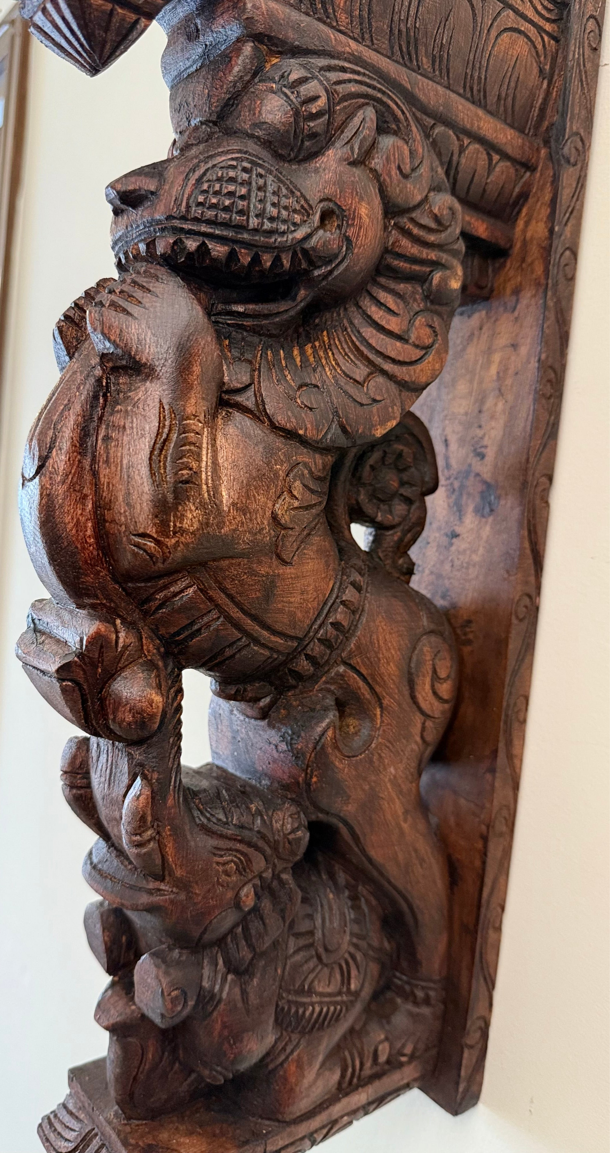 Hand Carved Yazhi (Yali) & Elephant Wall Bracket - Set of 2