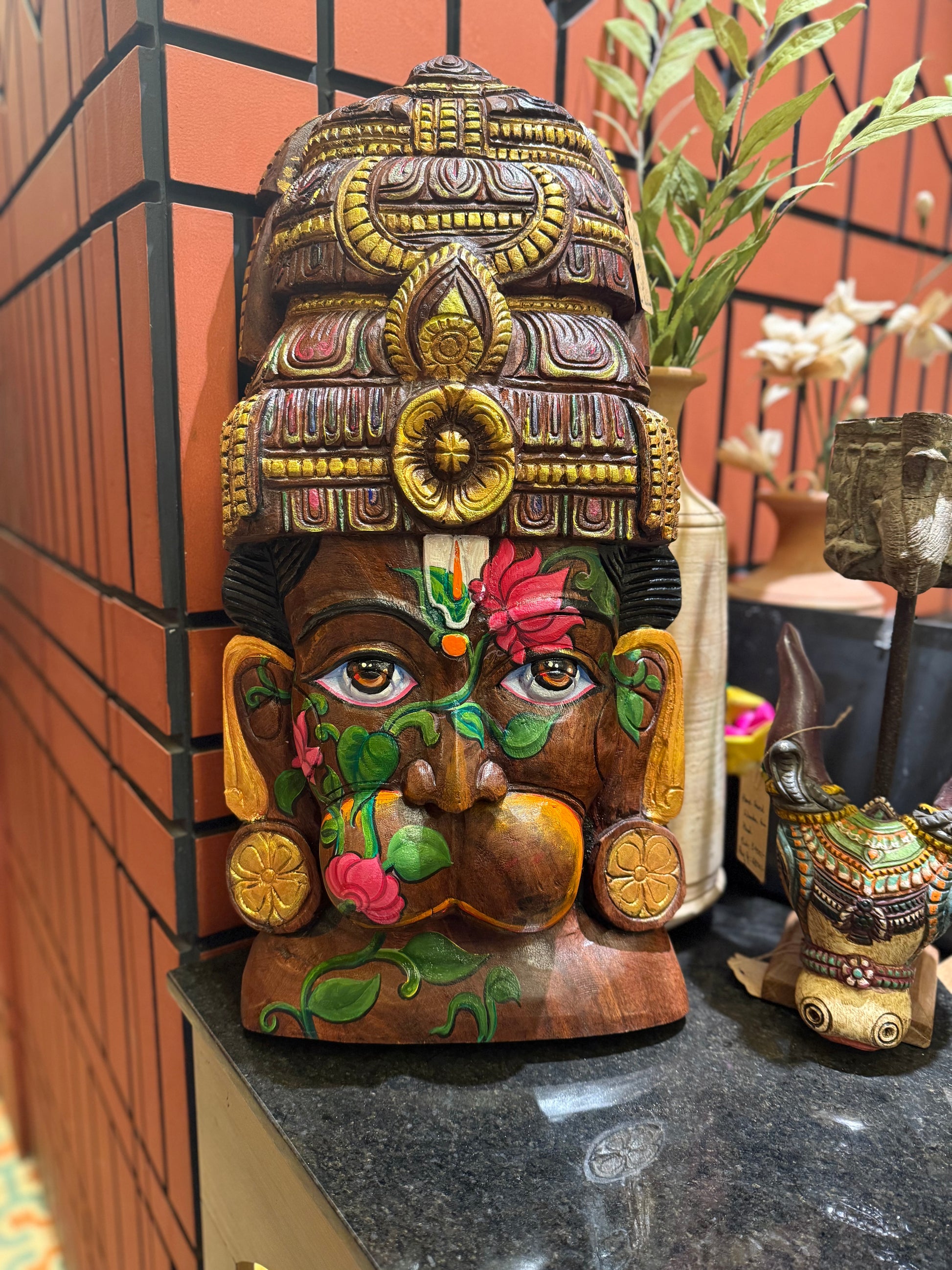 Wooden Hanuman Idol – Hand-Painted | 7 kg | Can be hung on wall or to be perched against a wall