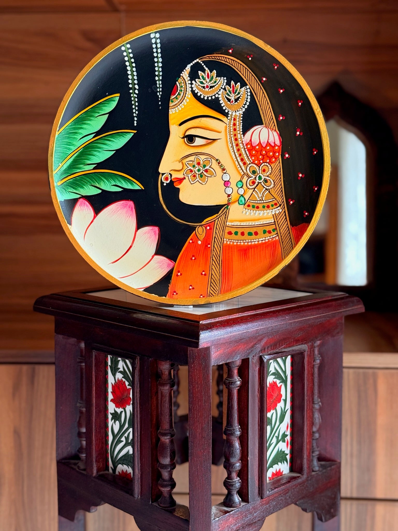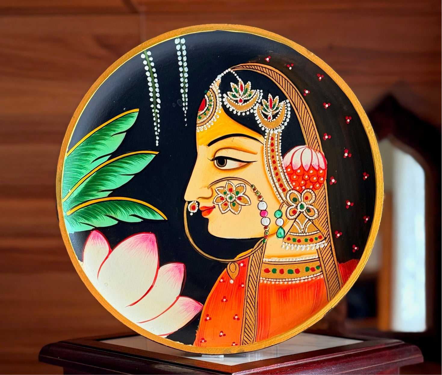 Add a touch of vibrant colour and timeless character to your walls with this hand-painted Pichwai-style wall plate. Rooted in the rich artistic heritage of Nathdwara, Rajasthan, this traditional form has been telling devotional stories for over 400 years through motifs like lotus flowers, cows, and gopis.